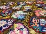 2.5in, double sided with varying color acrylic with gold star shaped clasp and holo overlay 💕