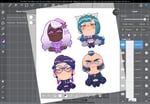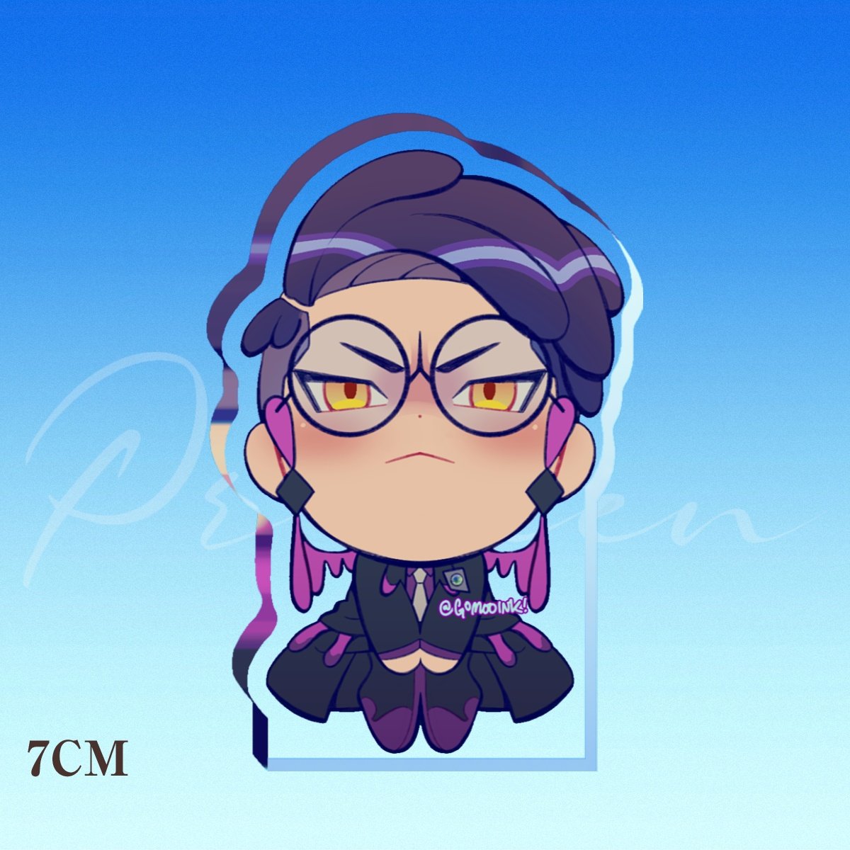 Stickers will be 3in tall while Standees will be made of thick acrylic and 2.3in tall. They're the perfect little desk buddies to watch you while you work!